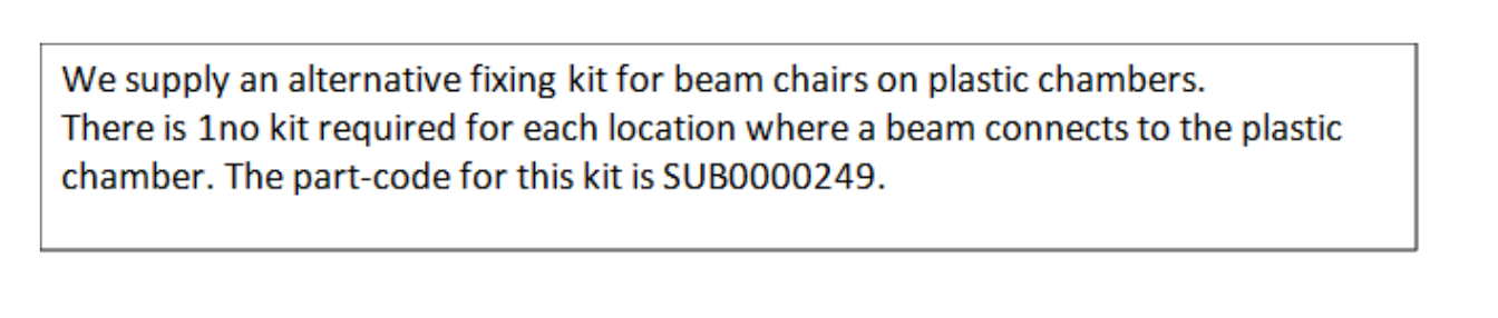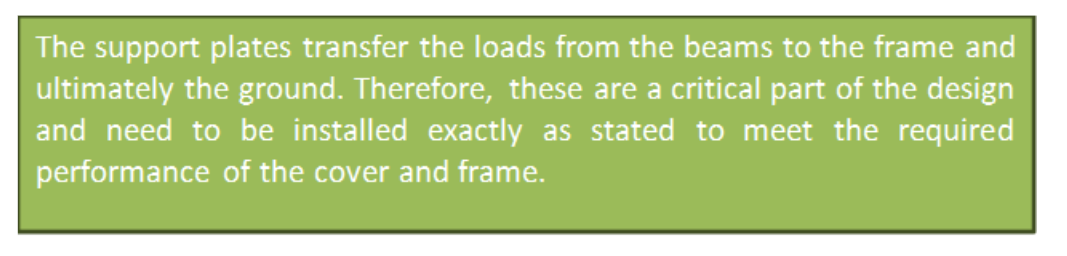 - When covers are supplied with support mechanisms that are not an integral part of the frame, it is advised that the supplied support pockets are fixed to the chamber wall using the preferred fixing method detailed in ‘Anchors’ below.