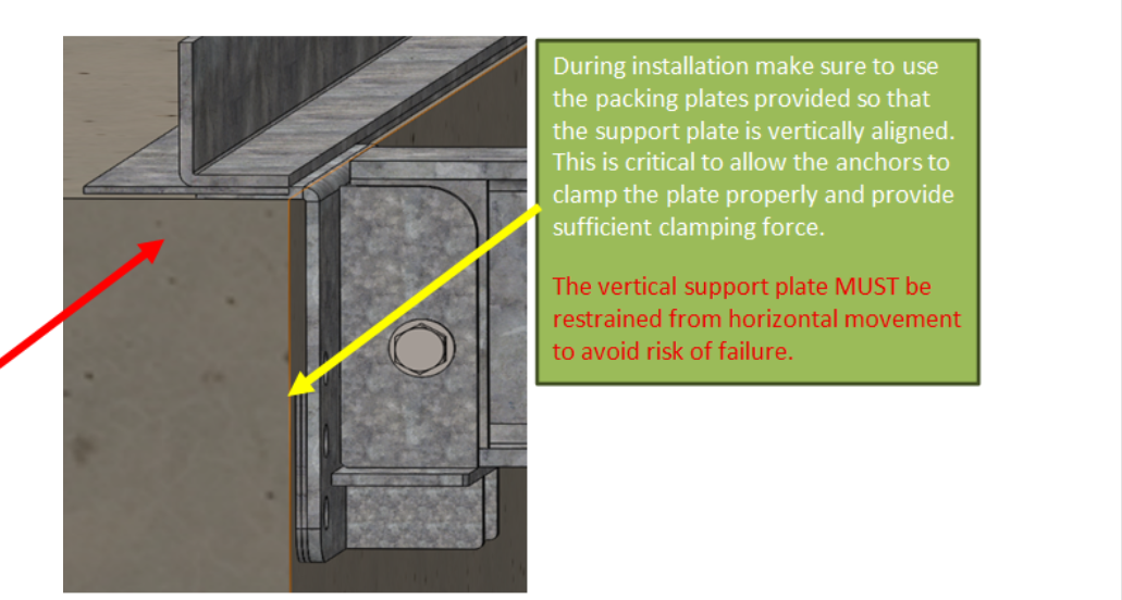 - Beam support plates should always be secured in the vertical position with suitable anchor bolts – see ‘Anchors’ section.